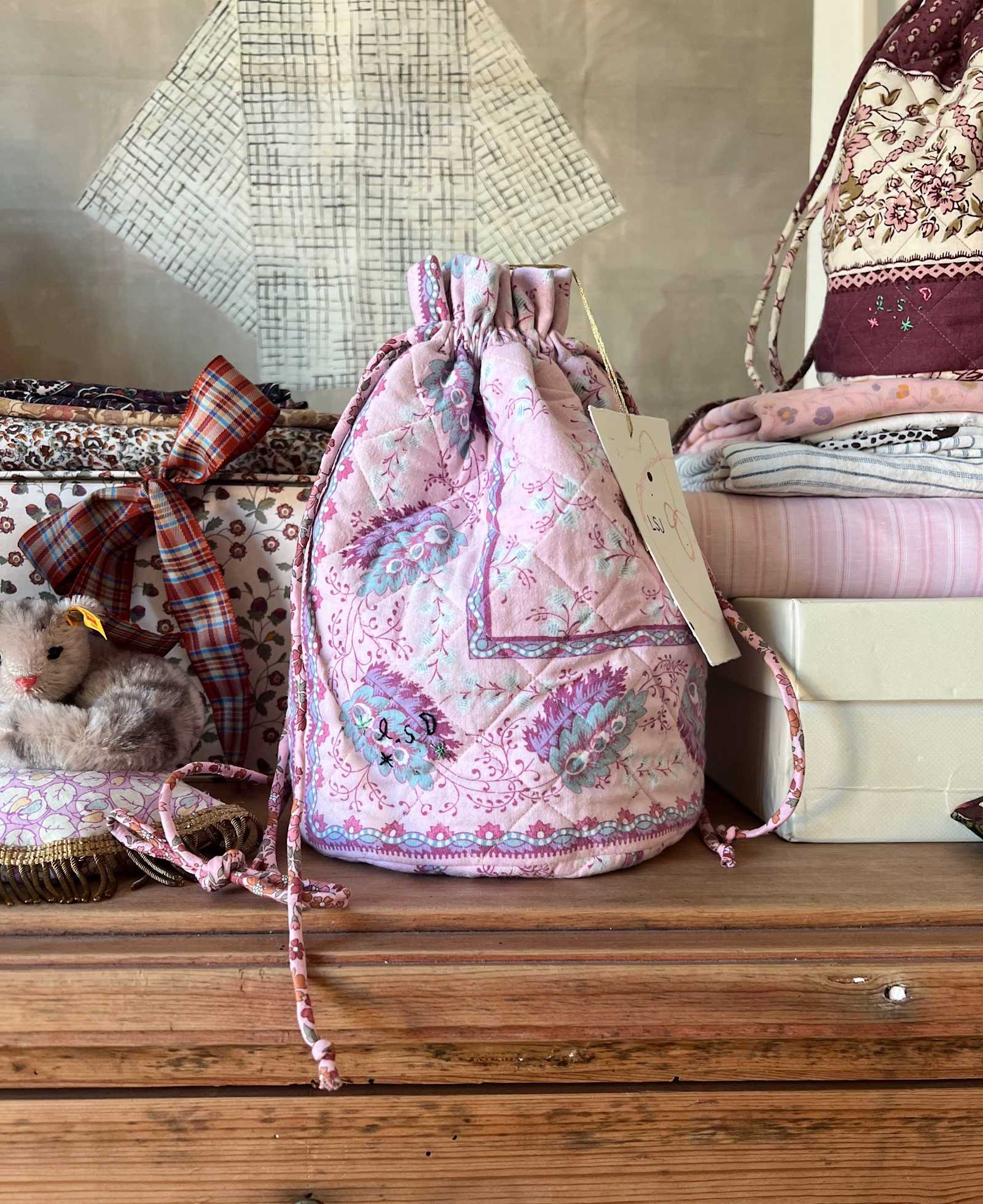 An ongoing project since 2015, Cherished Objects began with Line’s dreamy Hair Clouds that put scrunchies back on the fashion map, hand-stitched from vintage silk scarves and repurposed scraps of fabrics found in all corners of the globe. The Cherished Object edit now also consists of accessories and objects crafted by hand from antique and vintage fabric remnants and leftover objects as well as various textiles and quilts.